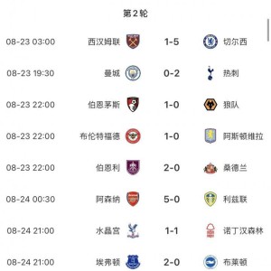 直播吧08月26日讯 第二轮10场比赛全部战罢,有的球队欢喜,有的球队悲忧...本轮联赛英超传统BIG6球队中,只有曼联...