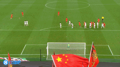 第35分钟,中国队左侧角球开出皮球第一下被门将击出,禁区外再来一脚远射,打高了↓